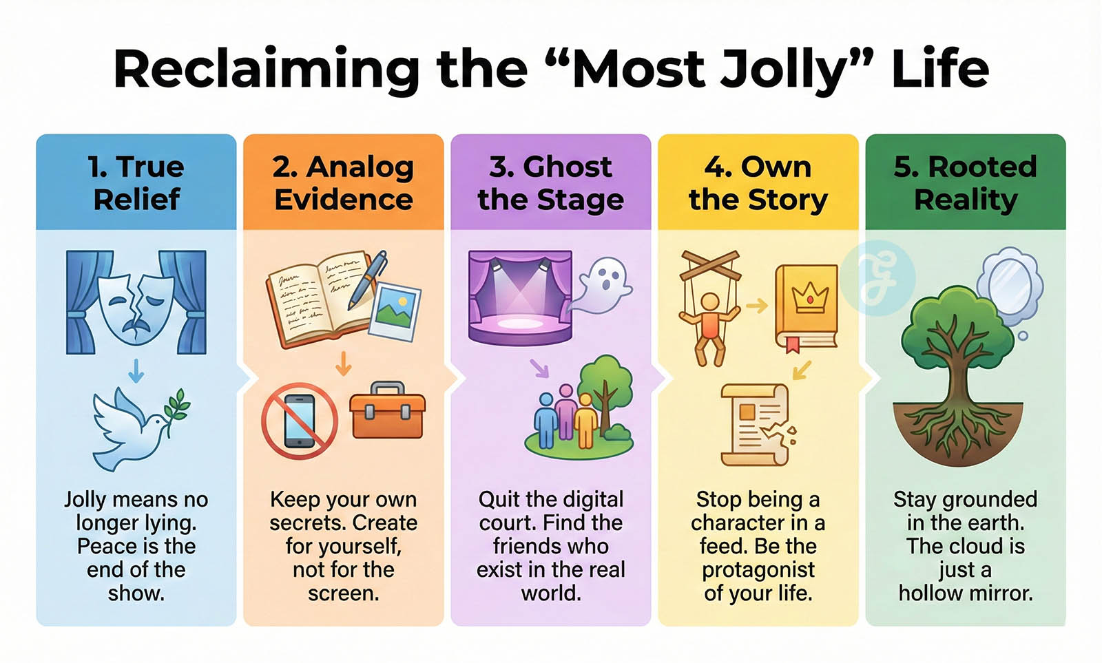 Being “jolly” does not mean being happy all the time. It means being relieved. It is the deep peace of no longer lying. You reclaim your life by leaning into “Analog Evidence.” You write in journals that no one will read. You take photos that stay in a drawer. You “ghost” the digital court to find your actual friends.