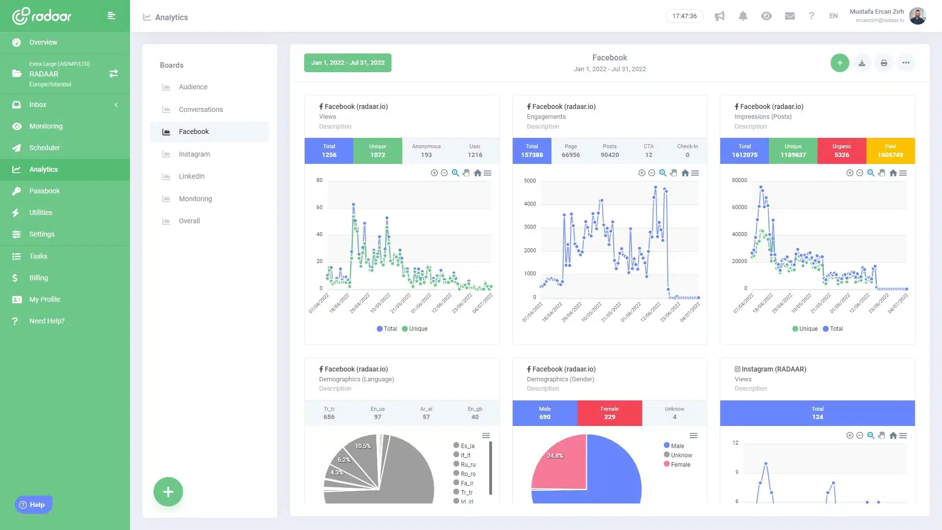 RADAAR review, marketers can easily manage all their social media accounts in one place. RADAAR offers an intuitive dashboard to help marketers view and manage all their accounts in a single interface. This helps marketers save time, as they no longer have to switch between different accounts to post updates, respond to comments, and interact with followers.
