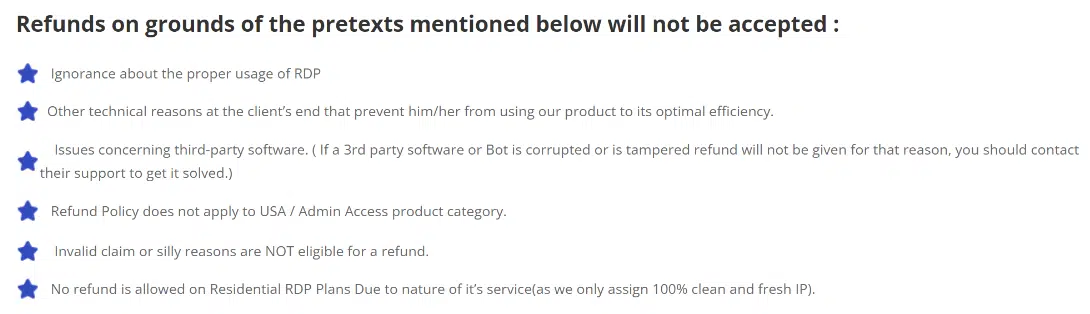 2. Lousy Refund Policy: Some RDP providers have refund policies that are either not very good or come with lots of tricky conditions that can make getting a refund a real hassle.