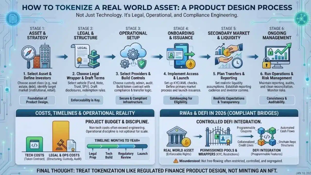 Tokenization is not a single technical step. It is a product design process that blends legal structuring, operations, compliance, and distribution.