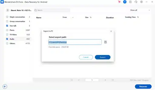 Afterward, you need to follow the displayed instructions to back up your WhatsApp. Following that, the tool starts showing all the deleted chats and data on your computer screen. Next, select the WhatsApp messages you want to retrieve and hit both “Recover” and “Export.”