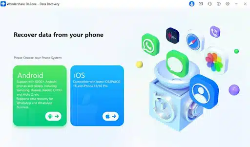 As we discussed above, in case you don’t have a backup, you need an advanced recovery tool. For all of the needs, we highly recommend Dr.Fone Android Data Recovery to get your data back. This dedicated tool offers powerful features for restoring lost WhatsApp messages. It works on over 6000 Android devices and supports Android 5.0 to Android 16. Moreover, you can recover 18+ deleted WhatsApp data without needing root access.