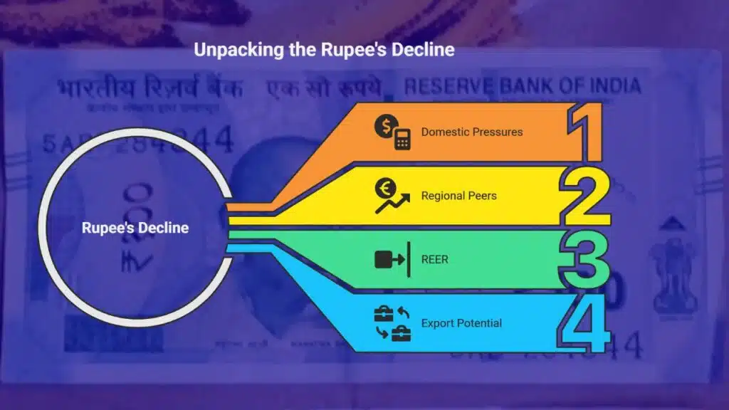 Analysts attribute this decline to a combination of external shocks and domestic vulnerabilities, with the U.S. decision to sharply increase tariffs on Indian goods acting as the immediate trigger