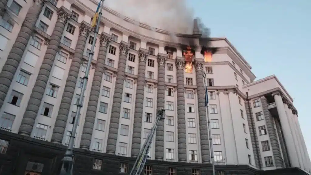 Witnesses reported large plumes of smoke rising above the city center, and video footage confirmed extensive fire damage. Ukrainian officials described the strike as a serious escalation, suggesting that Russia was no longer only focused on energy and military infrastructure but was also testing the resilience of Ukraine’s state institutions.