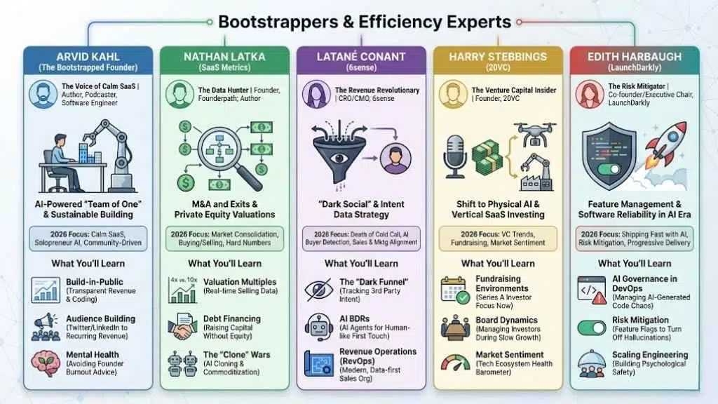 Not everyone wants to raise VC money and burn out. Arvid Kahl champions the “Calm SaaS” movement. In 2026, he is exploring how solopreneurs can use AI to build “teams of one.” He rejects the hustle culture, focusing instead on building sustainable, community-driven businesses that serve niche markets.