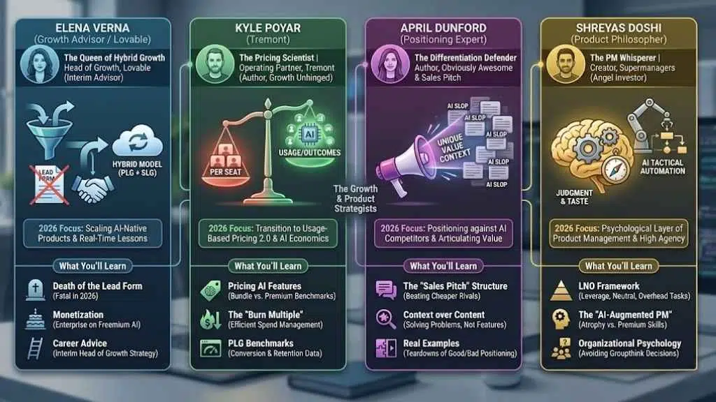 In a world where every SaaS landing page looks identical (because they were all written by the same LLM), April Dunford is your savior. Her 2026 content focuses on “Positioning against the AI Slop.” She teaches founders how to articulate unique value in a way that AI cannot replicate. If your product is “AI-powered X,” she will gently bully you until you find a better value proposition.