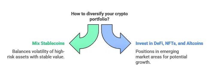 | Stablecoins (USDT, USDC) | 10% | Helps stabilize portfolio value, reducing volatility. |