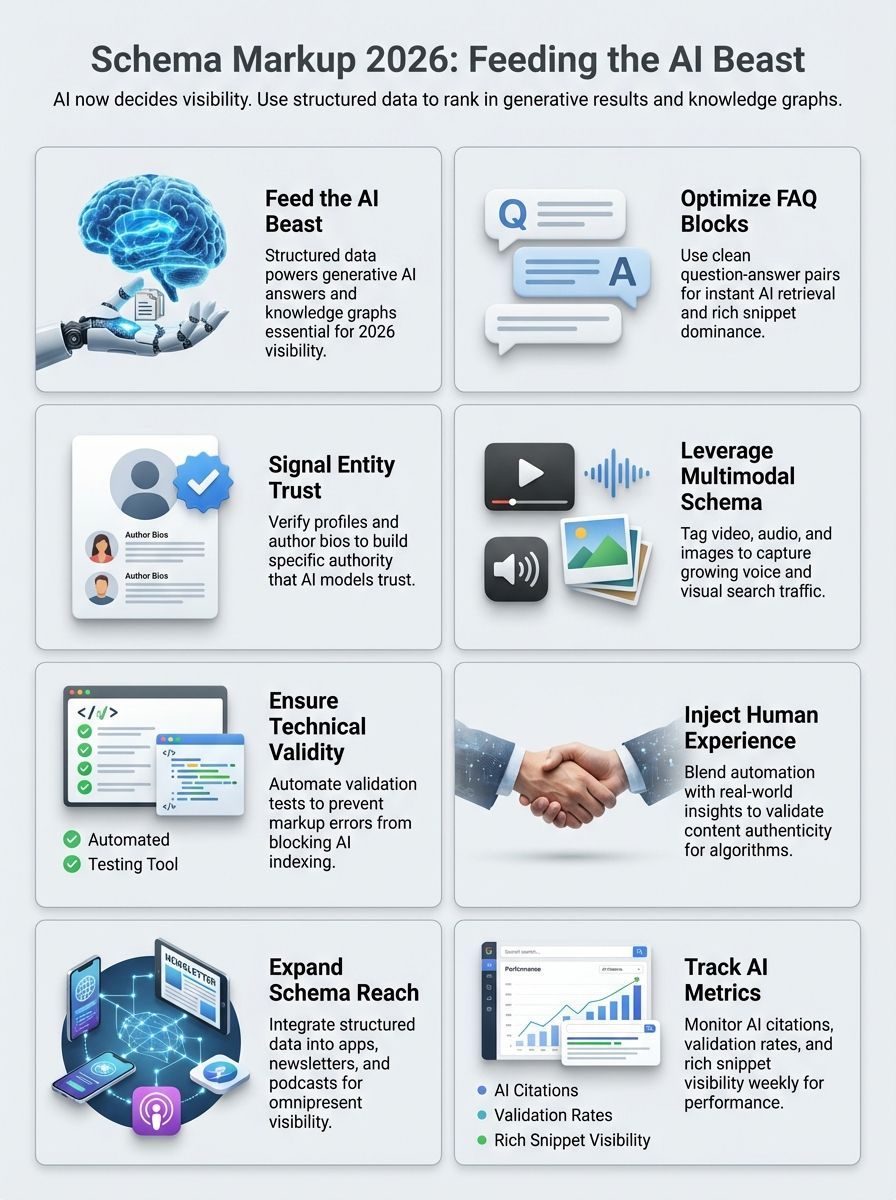 Clear schema markup gives AI the green light to pull facts from your site. In 2026, AI no longer just fetches data; it grabs information straight from well-marked sections of your content.
