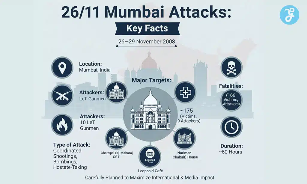 On the evening of 26 November 2008, Mumbai looked like any other busy weekday. Offices were closing, trains were crowded, and the streets around the Taj Mahal Palace Hotel, CST station, and Leopold Café were full of life. Within a few hours, that ordinary night turned into one of the darkest chapters in India’s history.