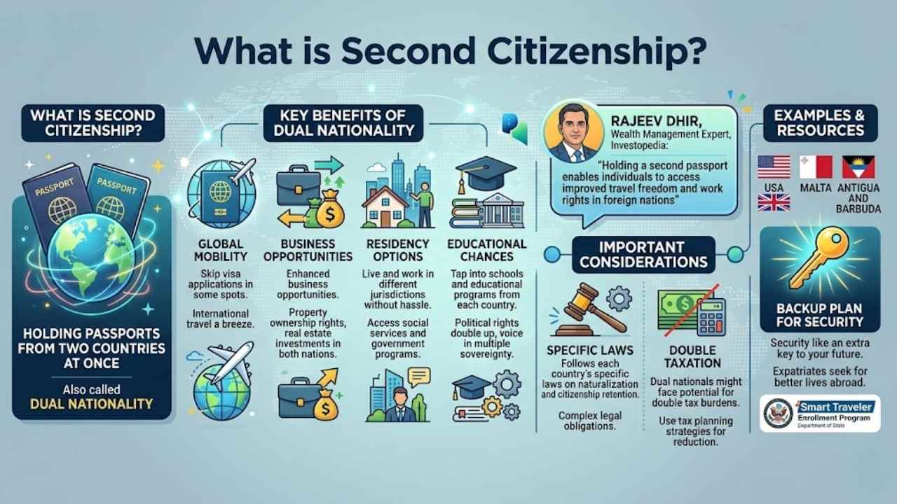 Countries like the USA, UK, Malta, and Antigua and Barbuda offer paths to this status. Think of it as having a backup plan for security, like an extra key to your future. Expatriates often seek this for better lives abroad, using tools like the Smart Traveler Enrollment Program from the Department of State.