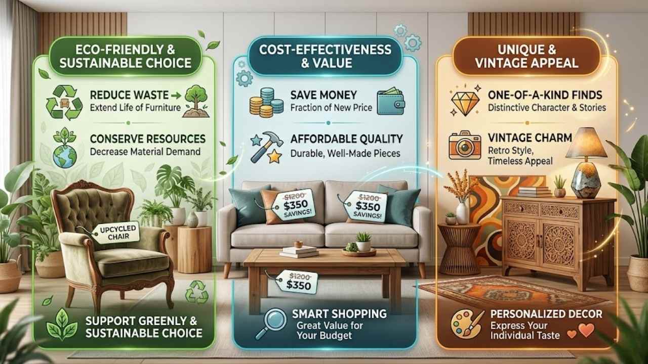 Market Intelo predicts the global second-hand furniture market hits USD 69.1 billion by 2033, fueled by these budget-friendly perks. Consumers prefer this path for its value, blending savings with sustainable living.
