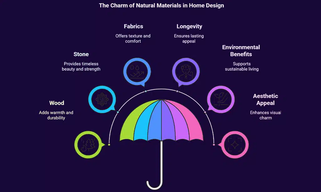 Natural materials bring a timeless charm to your home. Wood, stone, and cotton fabrics last for years and age well. They also add warmth and texture to your space. Pick oak floors, marble counters, or linen curtains for a classic look.