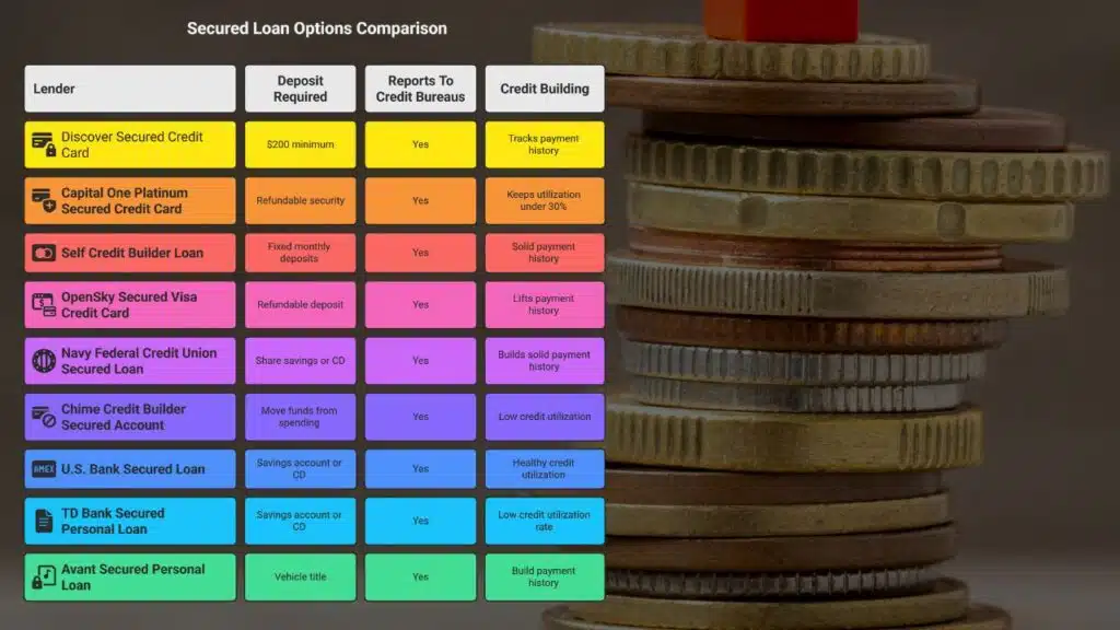 This post shows nine secured loans that report to all three credit bureaus. You’ll find secured credit cards, credit-builder loans, and secured personal loans with low interest rates.