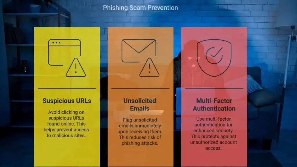 The best way to prevent this is to get acquainted with phishing methods. Never click on suspicious URLs, flag unsolicited emails, and make use of multi-factor authentication methods.