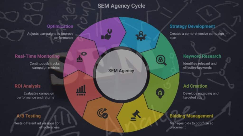 You should receive detailed performance reports that include metrics like click-through rates (CTR), impressions, cost-per-click (CPC), and return on ad spend (ROAS). A good SEM agency offers transparency and real-time reporting so you always know where your budget is going.