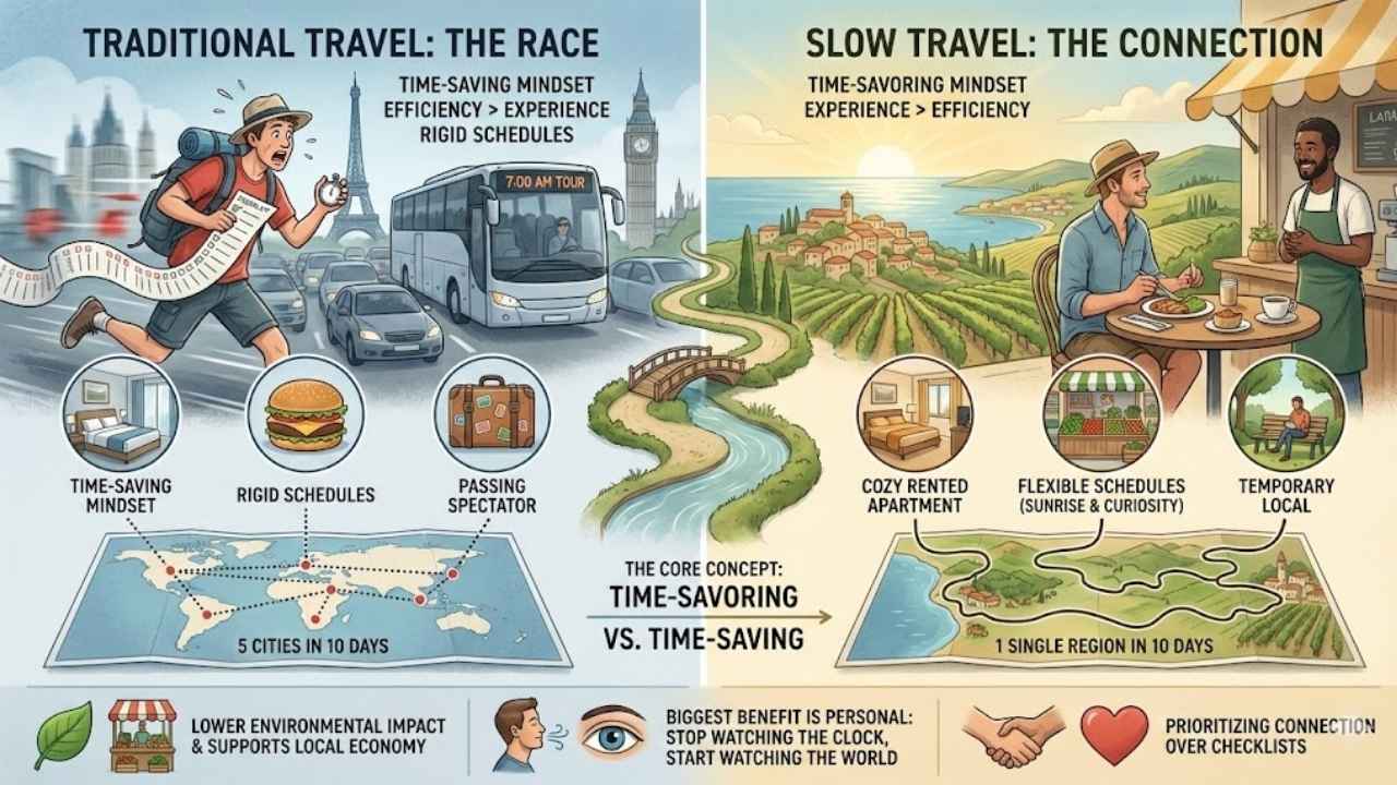 Do you ever come home from a trip feeling more tired than when you left? You race from one landmark to the next, snap a thousand photos, and cross places off a list like you are grocery shopping. You are not the only one feeling this way. A recent 2025 travel report found that 57% of Americans now plan to take longer trips specifically to avoid this burnout. They want connection, not just a collection of passport stamps.