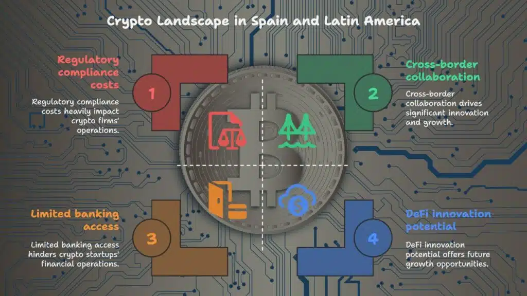 Spain and Latin America face both hurdles and chances in the crypto world. Rising regulations can slow growth, but strong partnerships can drive innovation in finance and tech.