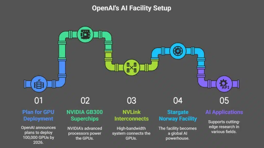 OpenAI plans to equip the facility with 100,000 NVIDIA GPUs by the end of 2026. These GPUs will be powered by NVIDIA’s GB300 Superchips, some of the most advanced processors designed for AI workloads. The chips will be connected via NVLink, a high-bandwidth interconnect system that boosts performance and enables efficient scaling of massive AI models.