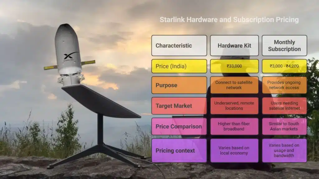 According to sources familiar with the company’s rollout plans, Starlink’s hardware kits—which include a satellite dish (Dishy), mounting tripod, and WiFi router—will be priced at approximately ₹33,000 per unit for Indian consumers. These kits are essential to connect users to Starlink’s global satellite network.