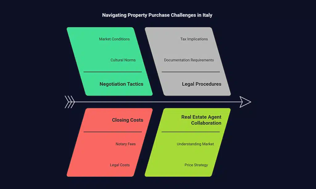 Negotiating in Italy is often done with respect and patience. Sellers typically expect negotiations, so don’t be afraid to make a reasonable offer. Work with your real estate agent to understand market conditions and pricing.