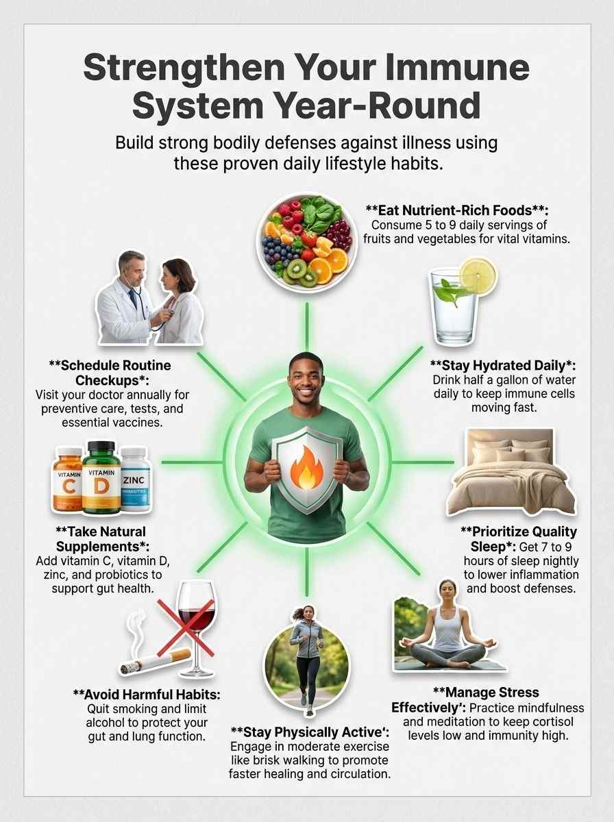 Adopting these habits helps strengthen immune system defenses, improve T cell response, and reduce the risk of micronutrient deficiencies—keeping the body resilient year-round.