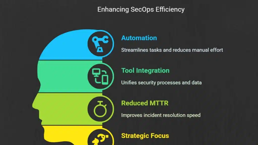 - Integrating security tools into a centralized platform unifies logging, alert correlation, and an orchestrated response.