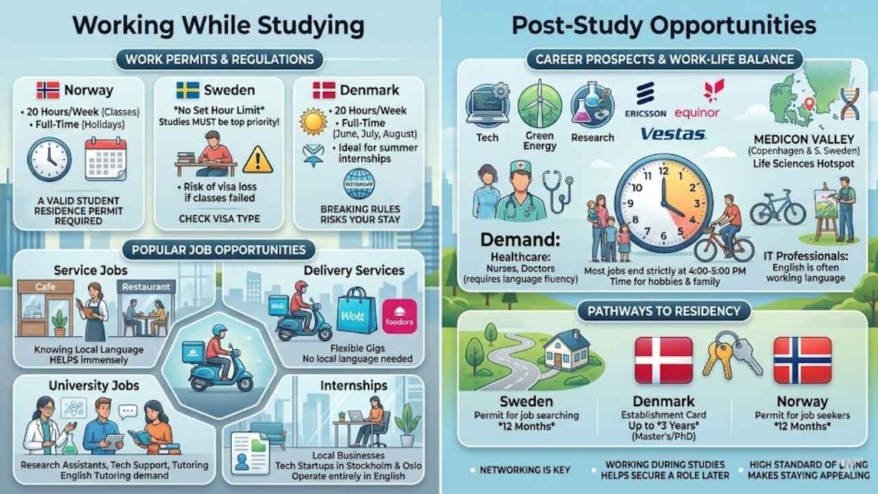 International students in Norway, Sweden, and Denmark need a valid student residence permit to work.