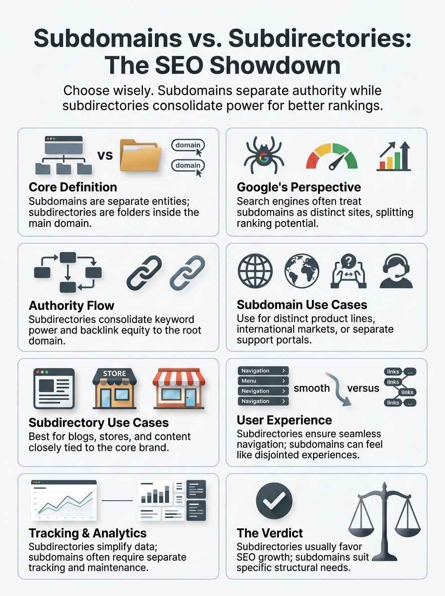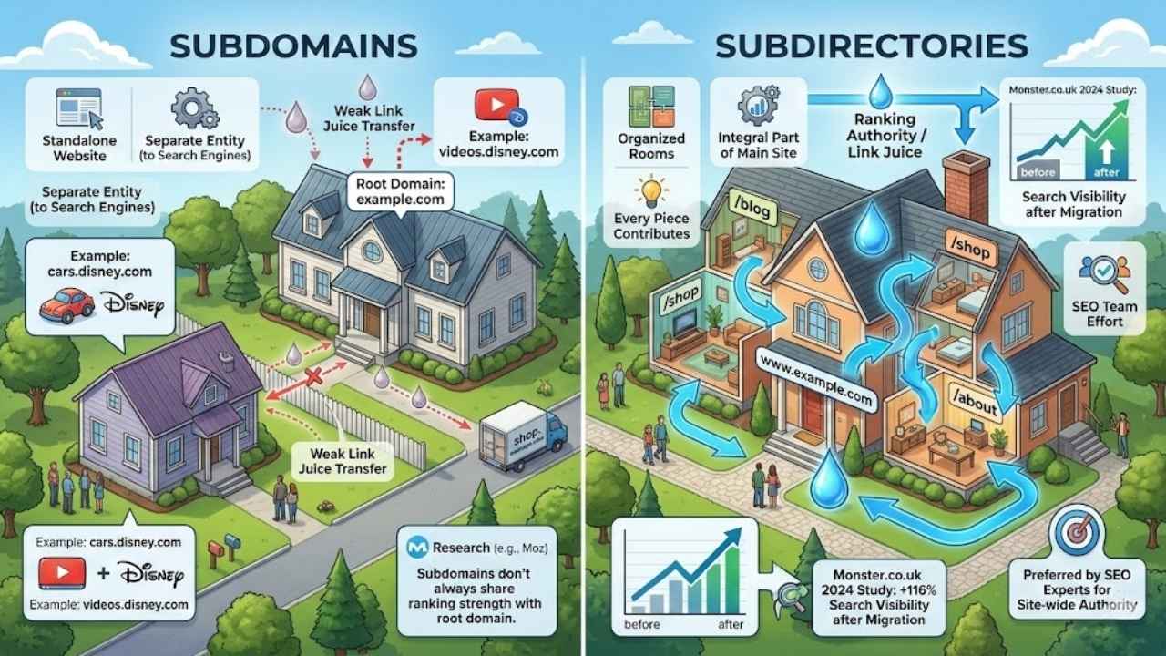 This guide breaks down what Subdomains Vs Subdirectories mean for traffic, rankings, authority, and user experience. No jargon—just clear, practical insights to help a website perform at its best.