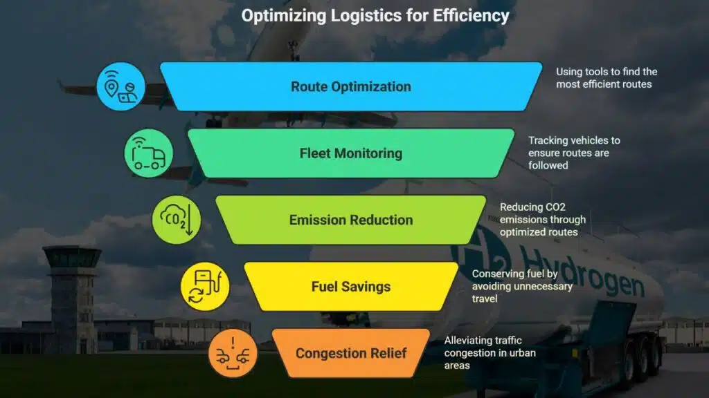 Logistics teams use route optimization tools with fleet monitoring and GPS tracking to plan efficient delivery loops. UPS ORION cut 100,000 metric tons of CO2 in a year and saved 10 million gallons of fuel.