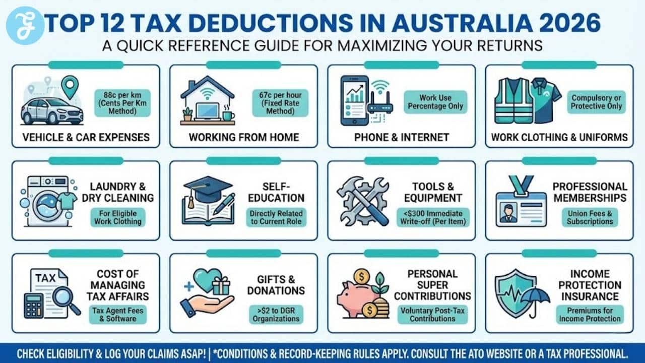 Here are the Top 12 Tax Deductions in Australia for 2026: