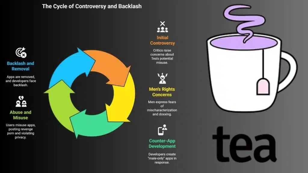 Some men have expressed fears of being doxxed or mischaracterized without due process. In response to Tea, a few developers tried launching “male-only” apps that claimed to provide a counterbalance. One such app, called Teaborn, quickly spiraled into chaos after users began posting revenge porn and violating privacy guidelines. The app was subsequently removed from the App Store, and its developer received intense backlash for enabling abuse.