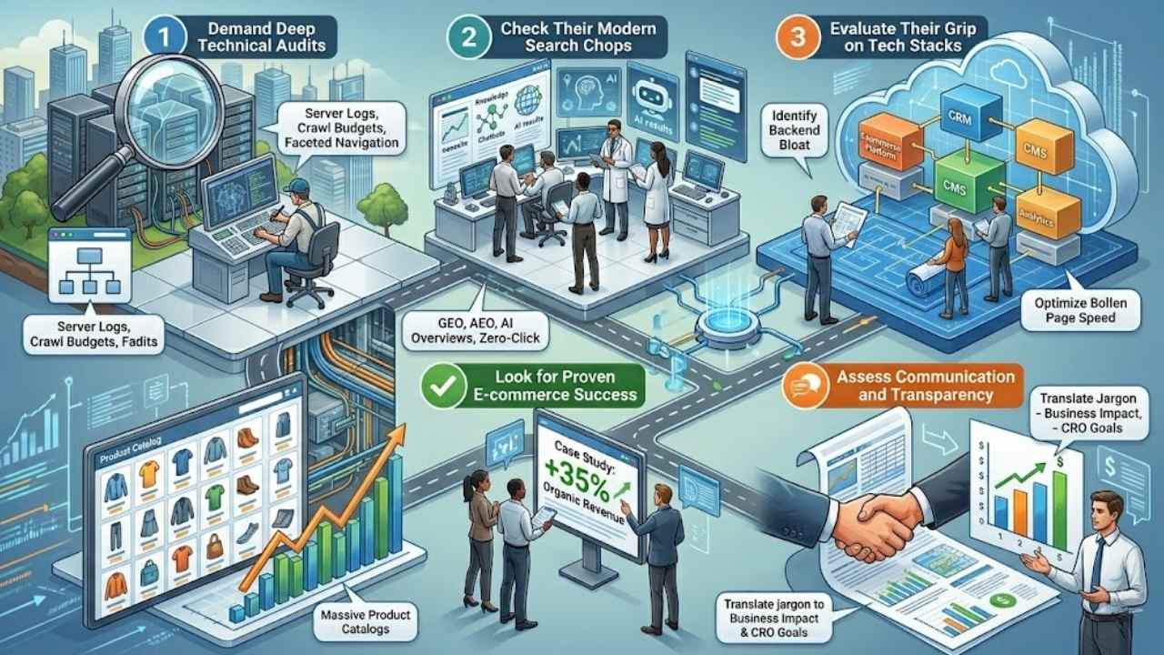 Demand Deep Technical Audits: Don’t settle for surface-level promises. A top-tier agency should be ready to dive into the weeds of your site’s architecture. Ask them exactly how they handle server logs, crawl budgets, and complex faceted navigation. If they only talk about basic meta tags, walk away.