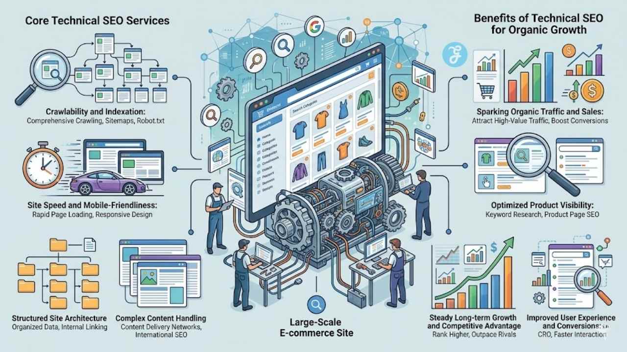 Large websites for big companies deal with thousands or millions of pages, and that creates real headaches for search engine optimization. Technical SEO steps in like a skilled mechanic, fixing the engine so everything runs smooth.