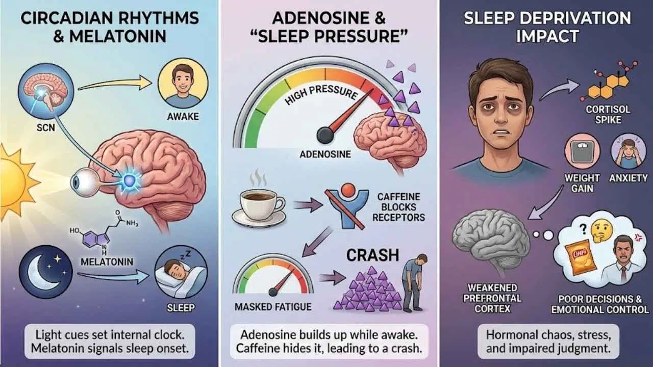 Your body runs on a clock. If that clock gets out of sync, tiredness can hit you like a ton of bricks. Let’s look at the chemical gears turning behind the scenes.