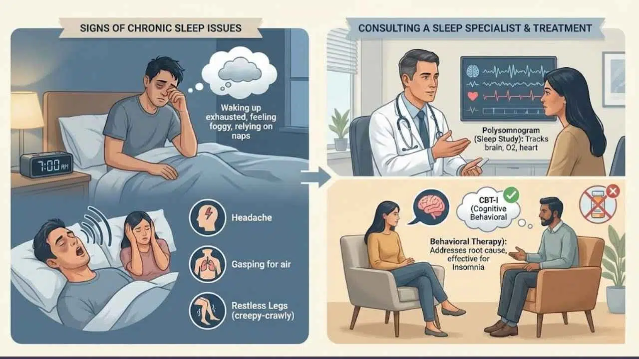 Waking up exhausted after a full night of sleep is a major red flag. If you feel foggy every day, rely on naps to function, or snore loudly enough to wake your partner, these are signs of an underlying disorder.