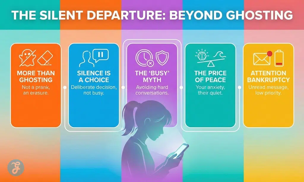 The Silent Departure is the definitive relationship crisis of our decade. It is a quiet, surgical removal of a person from your digital and physical reality. It is more than just ghosting. Ghosting feels like a prank. A silent departure feels like an erasure. It is a calculated withdrawal of energy. Sometimes, it is a power move designed to make the other person feel small. Other times, it is a total emotional collapse where the “sender” simply runs out of words to give. The silence isn’t a lack of communication. It is a declaration.