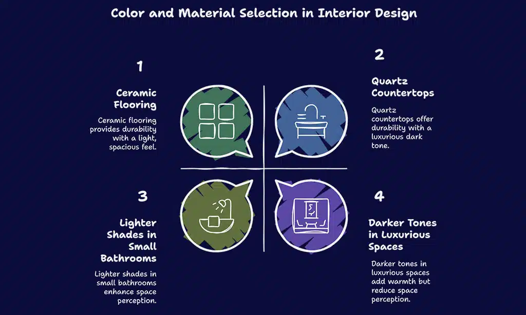 - Darker tones add luxury and warmth but can make a space feel smaller.