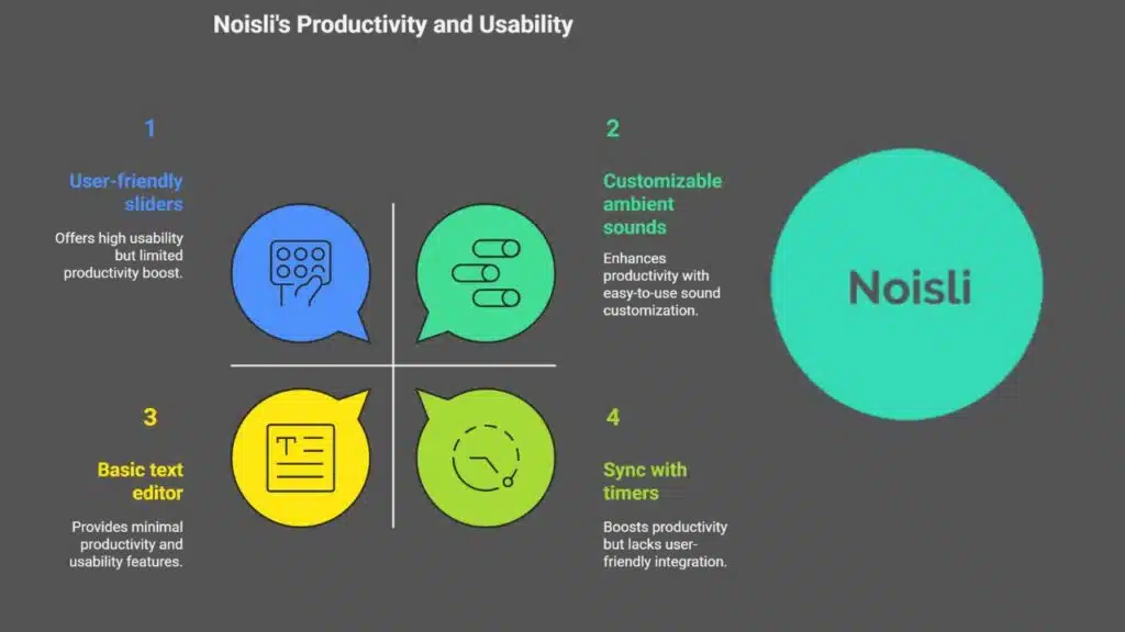 - Noisli, born in 2014, offers rain, wind, and café sounds plus a text editor. It runs on web, Android, and iOS. Seventy-three percent of users say it helps them work deeper with fewer breaks.