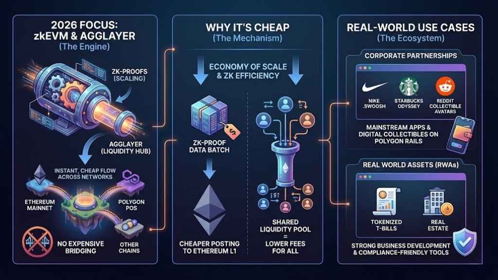 You probably know Polygon (MATIC/POL) from the 2021 bull run. In 2026, their focus has shifted to the Polygon zkEVM and the AggLayer (Aggregation Layer).