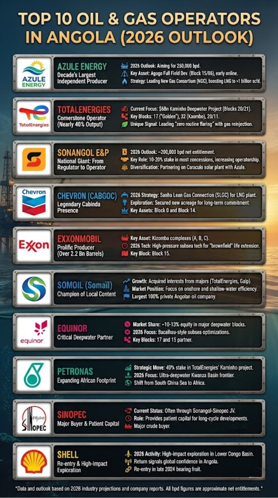 The “Top 10” in Angola are no longer just extracting resources; they are building an integrated energy economy. Whether it is Azule’s gas push or TotalEnergies’ deepwater innovations, the sector is more dynamic in 2026 than it has been in decades. For those looking to enter the market, the message is clear: Angola is open for business, and the blocks are busier than ever.