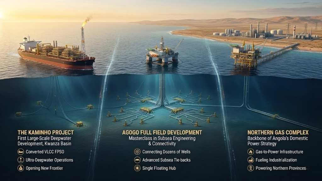 - The Kaminho Project: Angola’s first large-scale deepwater development in the Kwanza Basin. It uses a converted Very Large Crude Carrier (VLCC) as an FPSO.