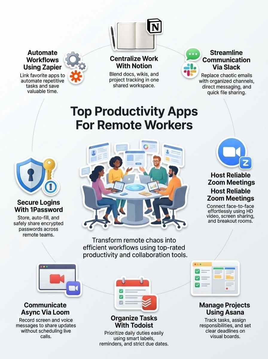 You’ve just explored top apps like Notion for workspaces, Slack for chats, and Zoom for meetings that boost remote work. These tools make tasks simple and teams connected, no hassle involved.
