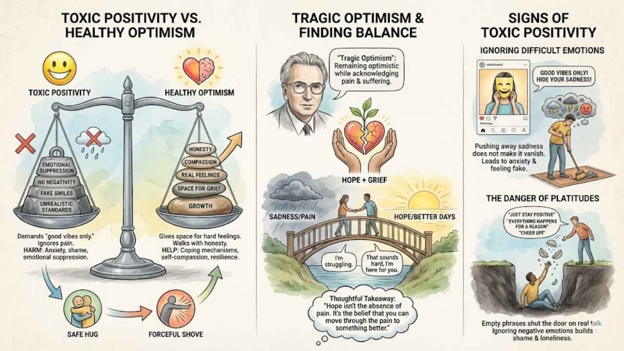 Psychologists often refer to a healthier alternative called “Tragic Optimism.” This concept, popularized by Viktor Frankl, means remaining optimistic while still acknowledging the reality of pain and suffering. It supports hope but still makes space for grief.