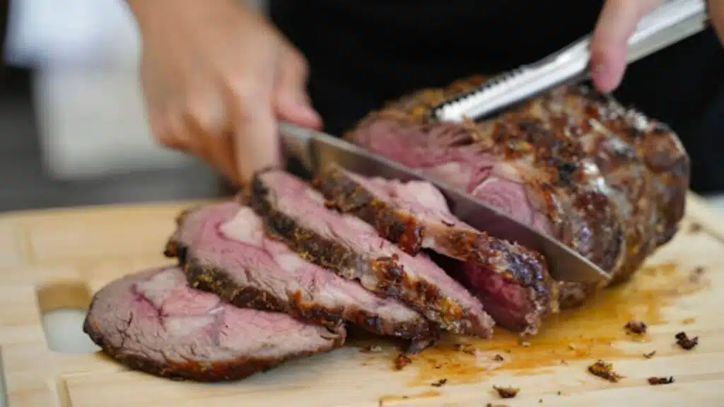 When the roast is done, remove from the oven and allow the meat to rest on a plate or serving platter for 10-15 minutes covered with foil before cutting and serving.