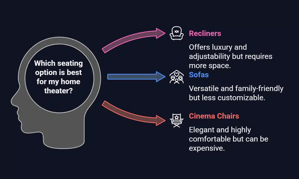Comfortable seating is a crucial part of any home theater. You want seats that offer ample support for long viewing sessions while also being arranged in a way that allows everyone a perfect view of the screen.