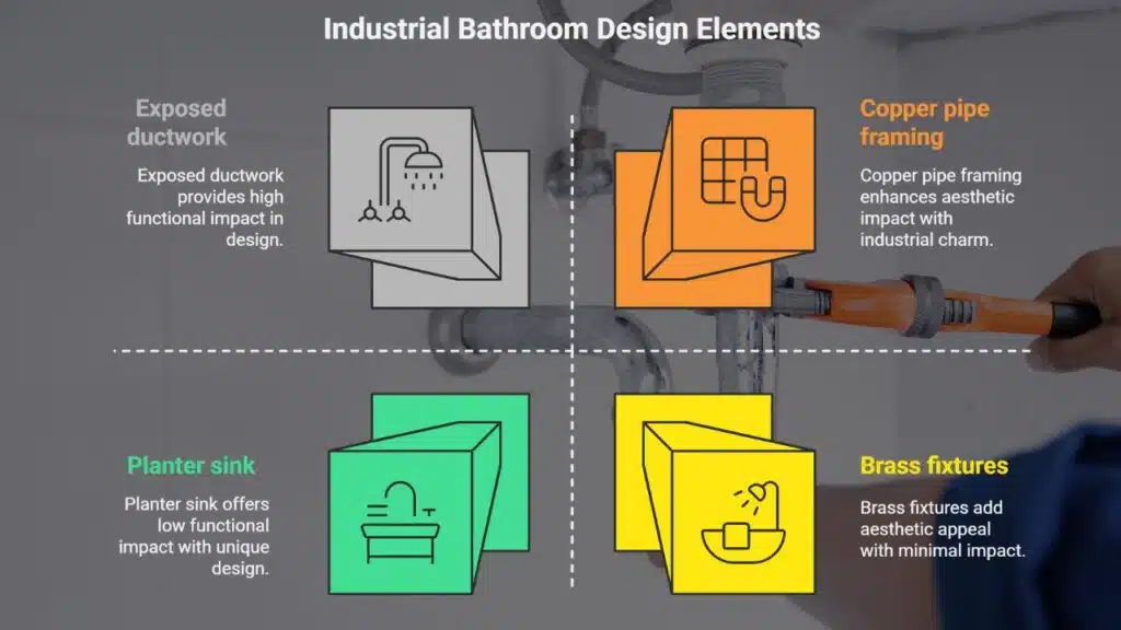 1. What key features define an urban industrial bathroom style?