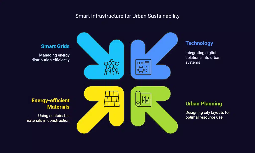 Smart infrastructure combines technology with urban planning to optimize resource use and improve sustainability. From energy-efficient building materials to smart grids, these technologies help cities use fewer resources while improving overall urban efficiency.