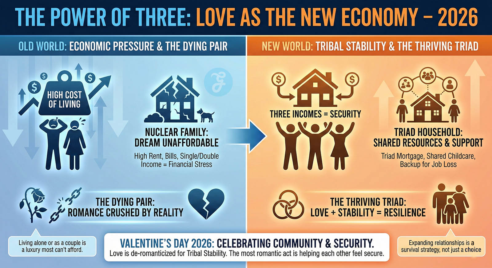 In 2026, living as a traditional couple is a luxury most can’t afford. The “Nuclear Family”… that dream of a house and a dog on a double income, has hit a wall of high rent and surging grocery bills. In this economy, the romantic “pair” has become an endangered species.