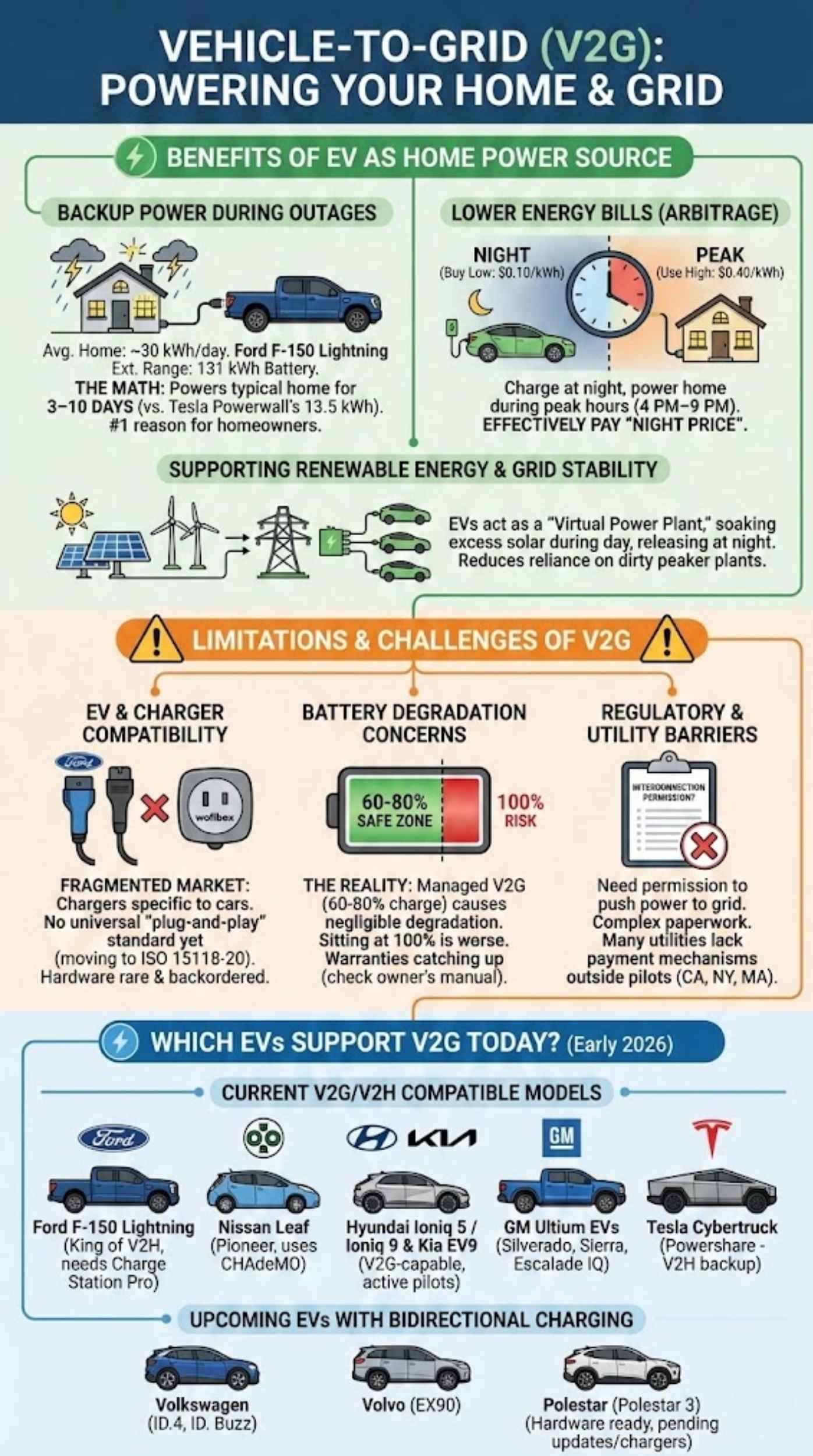 Imagine your electric vehicle (EV) not just as a car, but as a giant battery on wheels that can power your home during a blackout or even earn you money by selling electricity back to the grid. This isn’t science fiction—it’s Vehicle-to-Grid (V2G) technology, and for many homeowners, it is becoming a reality in 2025/2026.