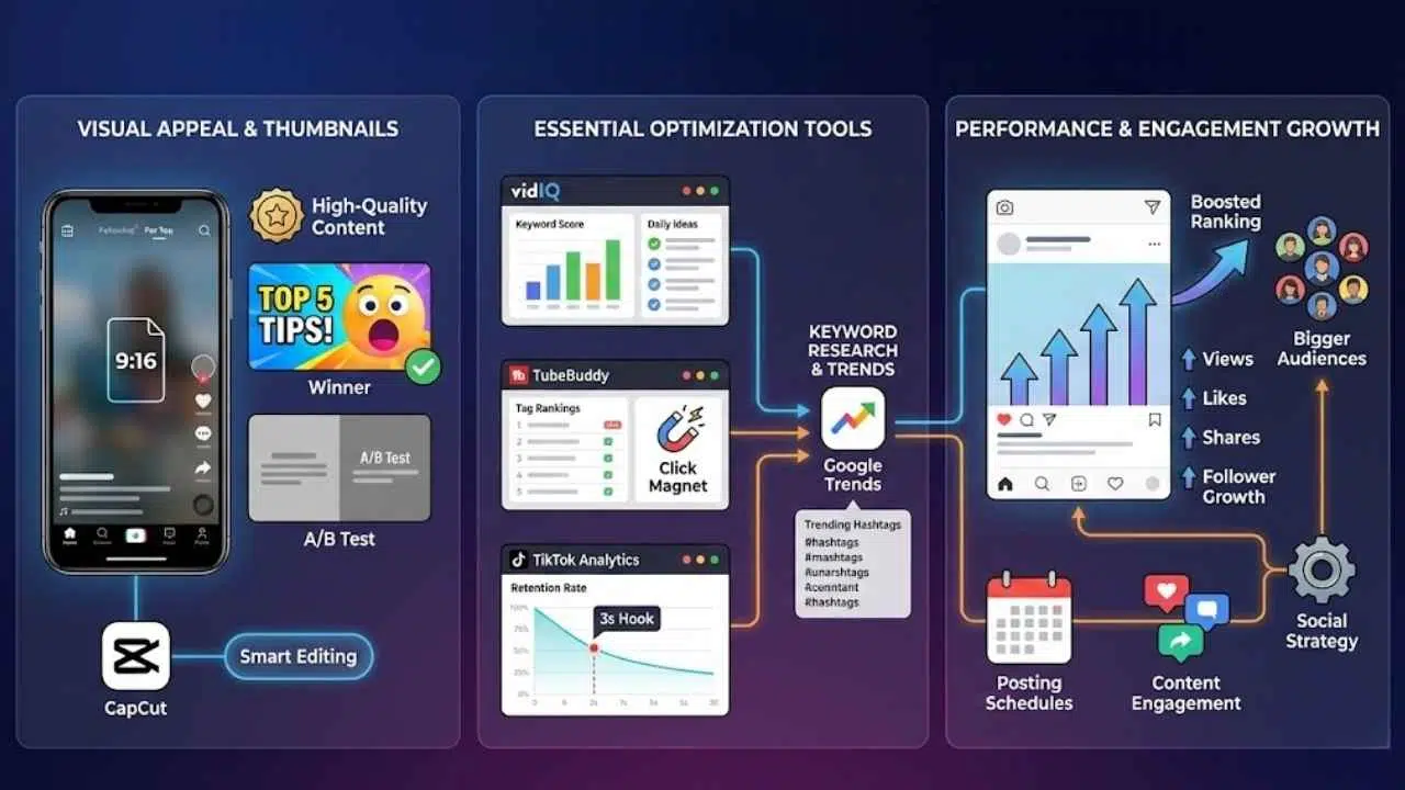 Smart keyword research supports your social media strategy. Clear descriptions, captions, strong hashtags, and eye-catching thumbnails all play a role.